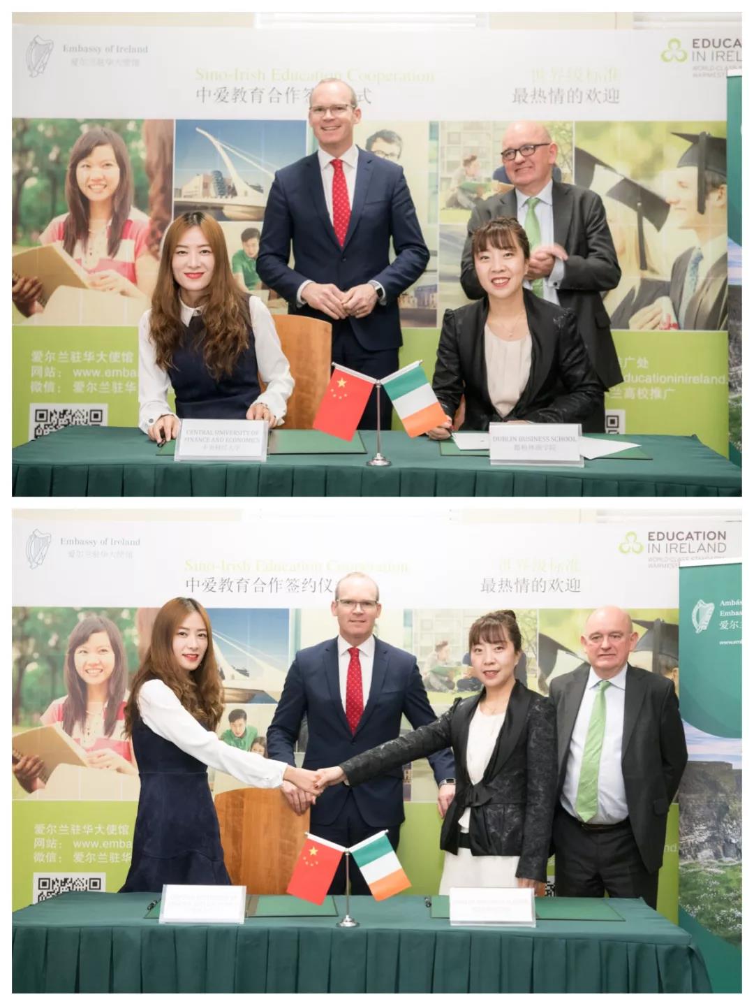 中爱高等教育合作新闻发布会于3月15日在爱尔兰大使馆举行。中国与爱尔兰有近40年的建交历史,在过去的四年里,经过各方努力,爱尔兰留学持续升温,赴爱留学人数增长至2350人,签证获签率高达97%。爱尔兰副总理西蒙.科文尼先生(Simon CoveneyT.D.),爱尔兰驻华大使李修文先生(Eoin O'Leary),中央财经大学金融学院国际本科项目孟灿老师,都柏林商学院校方代表娄峰女士共同就中爱两所院校间的国际本科(IUP)交流项目进行了交流讨论,最终达成合作协议。