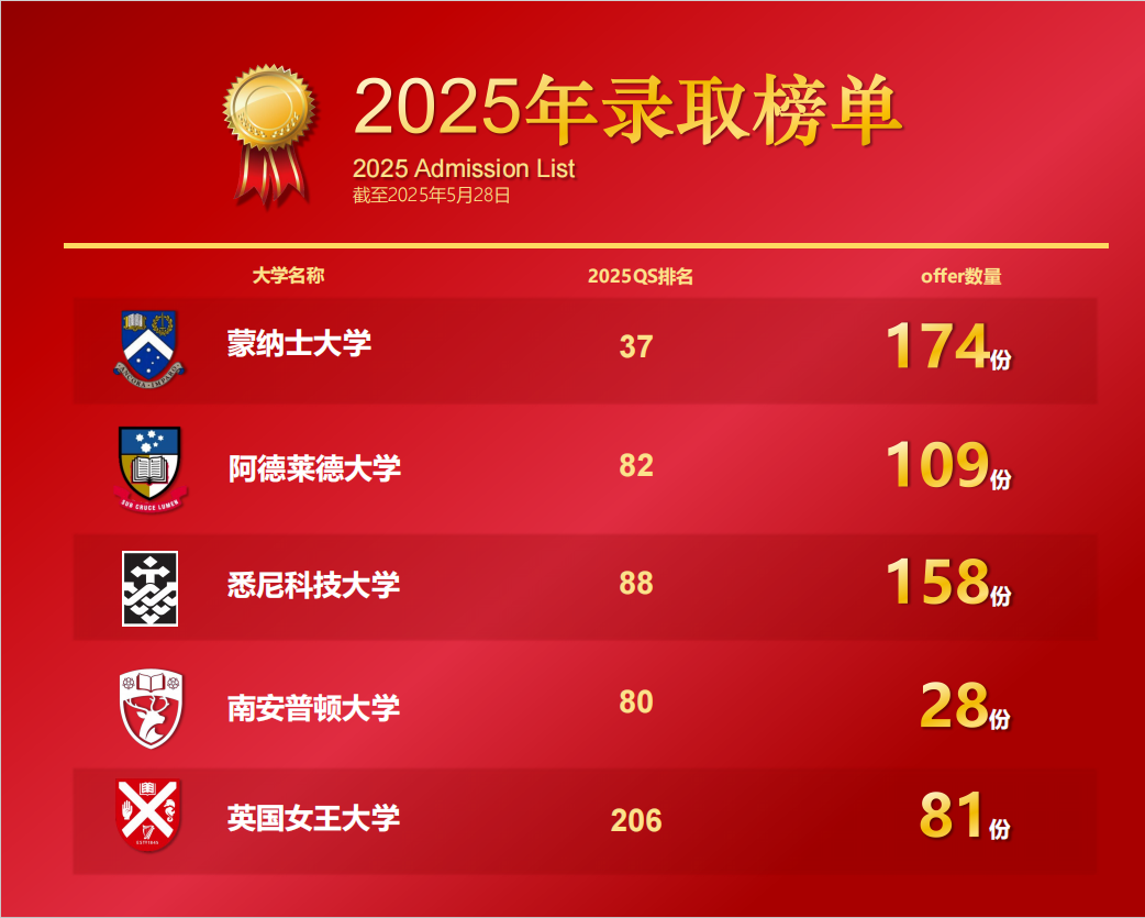 2025年录取榜单公布!多项突破!斩获1269份国际名校录取通知书!